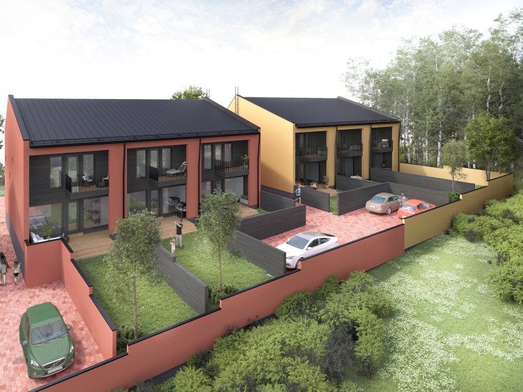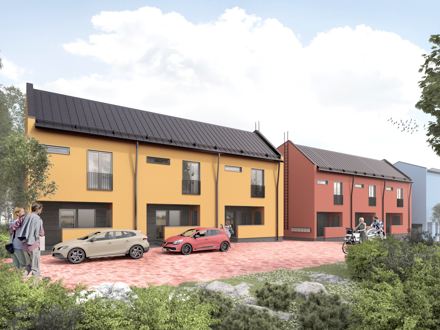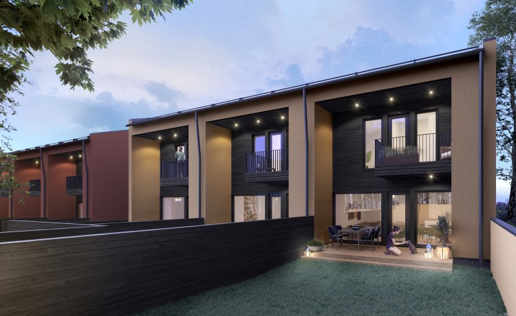 Asunto Oy Helsingin Alppimetsän townhouse-rivitalot edustavat uutta helsinkiläisen pientaloasumisen mallia. Alppikylänkujaan kiinni rakennettavat townhouset muodostavat intiimiä ja urbaania katutilaa ja jatkavat alueen voimakasta kaupunkimaista identiteettiä, johon kuuluvat värikkäät rapatut julkisivut ja jyrkkä harjakatto. Arkkitehtuuri on rauhallista ja aukotus harkittua. Julkisivuissa vuorottelevat laajat rappaus ja puupaneelipinnat. Asuntoihin käydään sisään kadulta sisäänvedetyn kuistin kautta omasta ulko-ovesta. Asuntojen pihat avautuvat etelän suuntaan ja osin sisäänvedetyt terassit ovat suojassa naapurien katseilta. Kompaktit piha-alueet on rajattu aidoilla. Keskimmäisten asuntojen asuntopihoille pääsee kulkemaan ulkokautta tontin takarajaa pitkin. Asunnot ovat avaria ja valoisia. Ikkunat ovat lattiaan saakka ulottuvia ja oleskelutiloissa huonekorkeus on tavanomaista korkeampi. Astuttaessa sisään tilavaan eteiseen, avautuu avara näkymä asunnon läpi ulos saakka. Sisäänkäynnin läheisyydessä on kätevästi ulkovarasto, portaan alle sijoittuva vaatehuone ja wc. Keittiö, ruokailutila ja olohuone muodostavat yhtenäisen suuren tilan, joka on helposti kalustettavissa ja joka yhdistyy luontevasti suureen katettuun terassiin ja omaan piha-alueeseen.